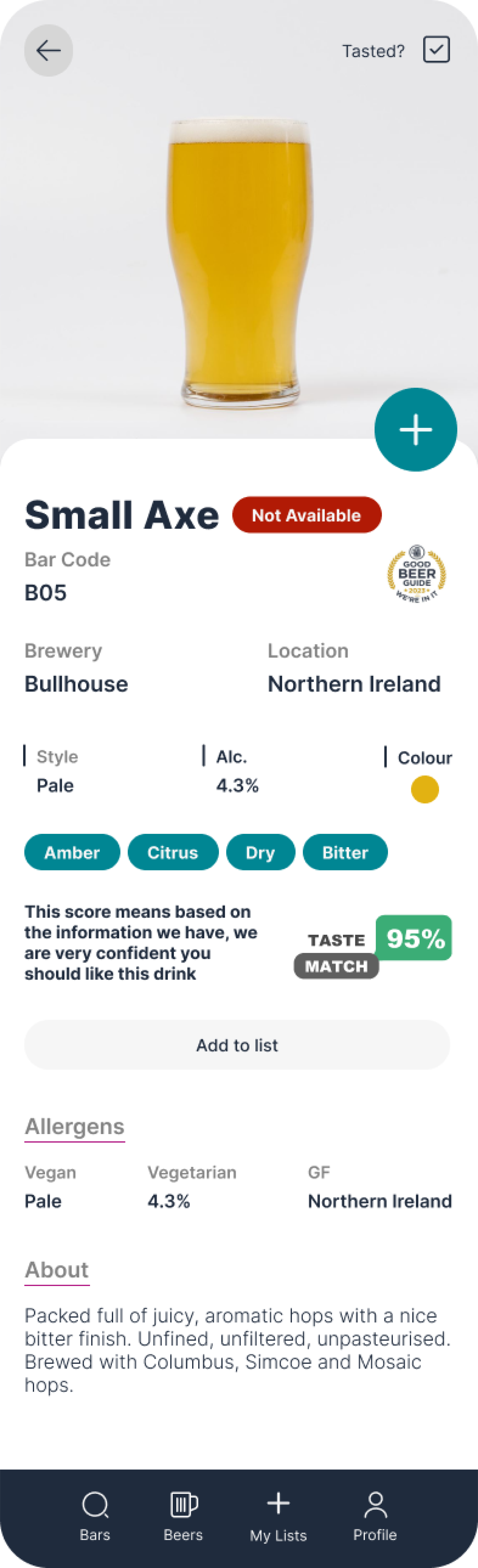 The Tastematch Service is a beer recommendation feature on the app. This is how it works:
